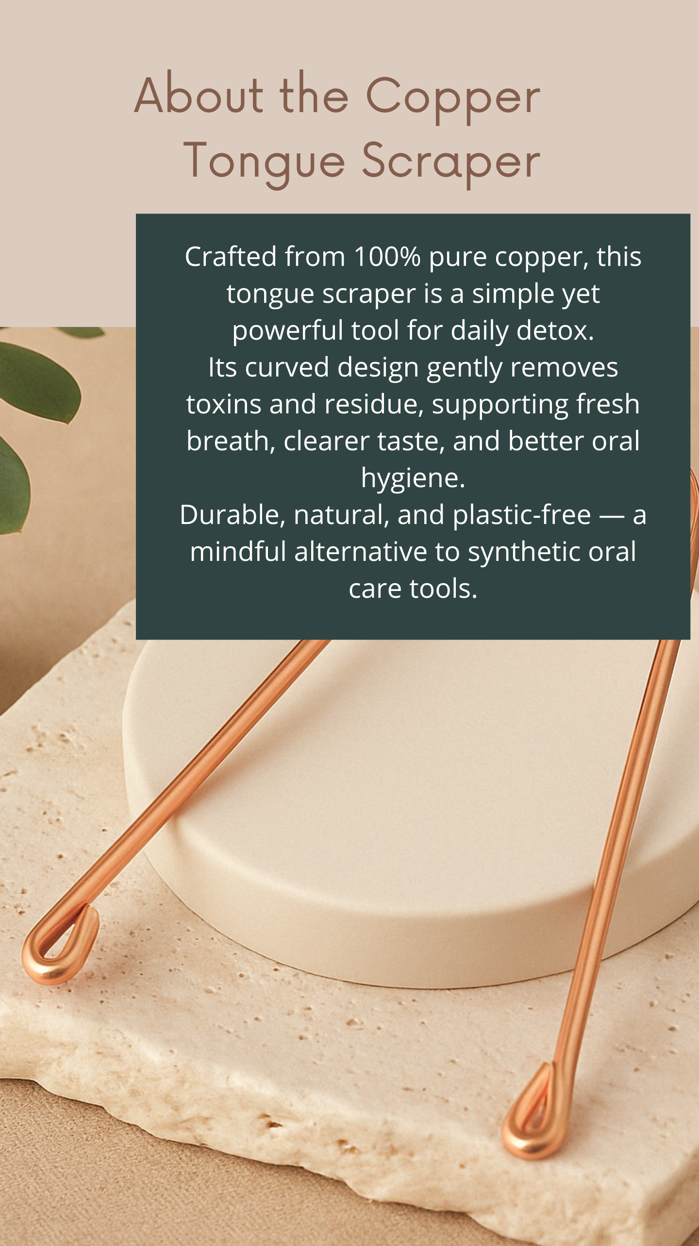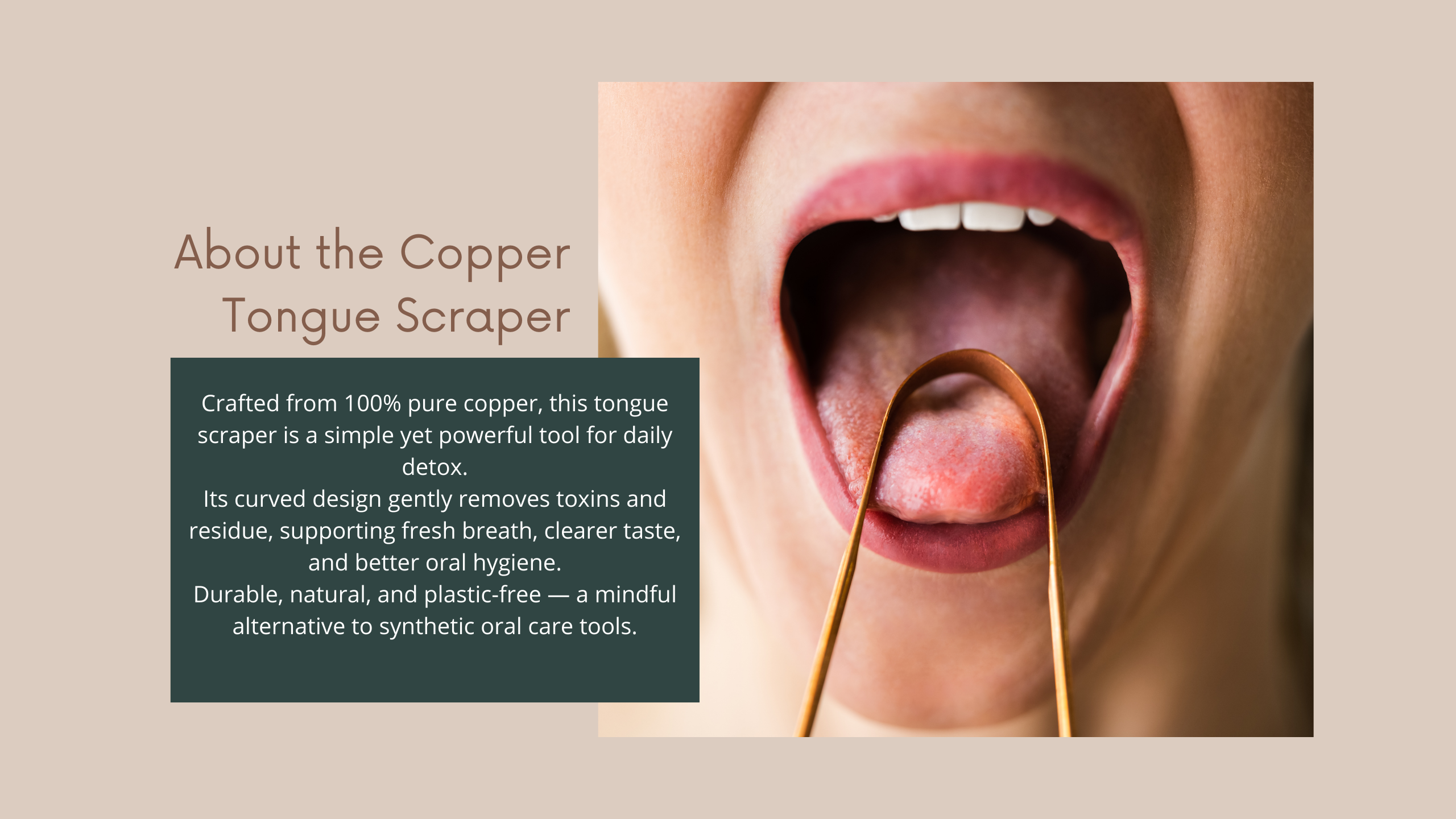 Made from antimicrobial copper — naturally fights bacteria and supports oral hygiene.