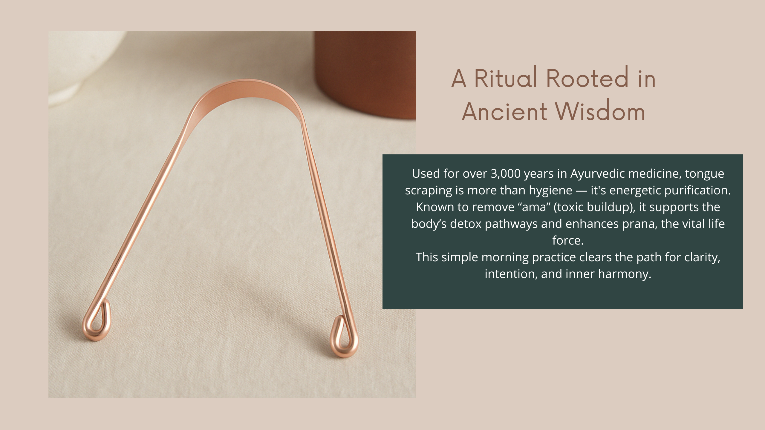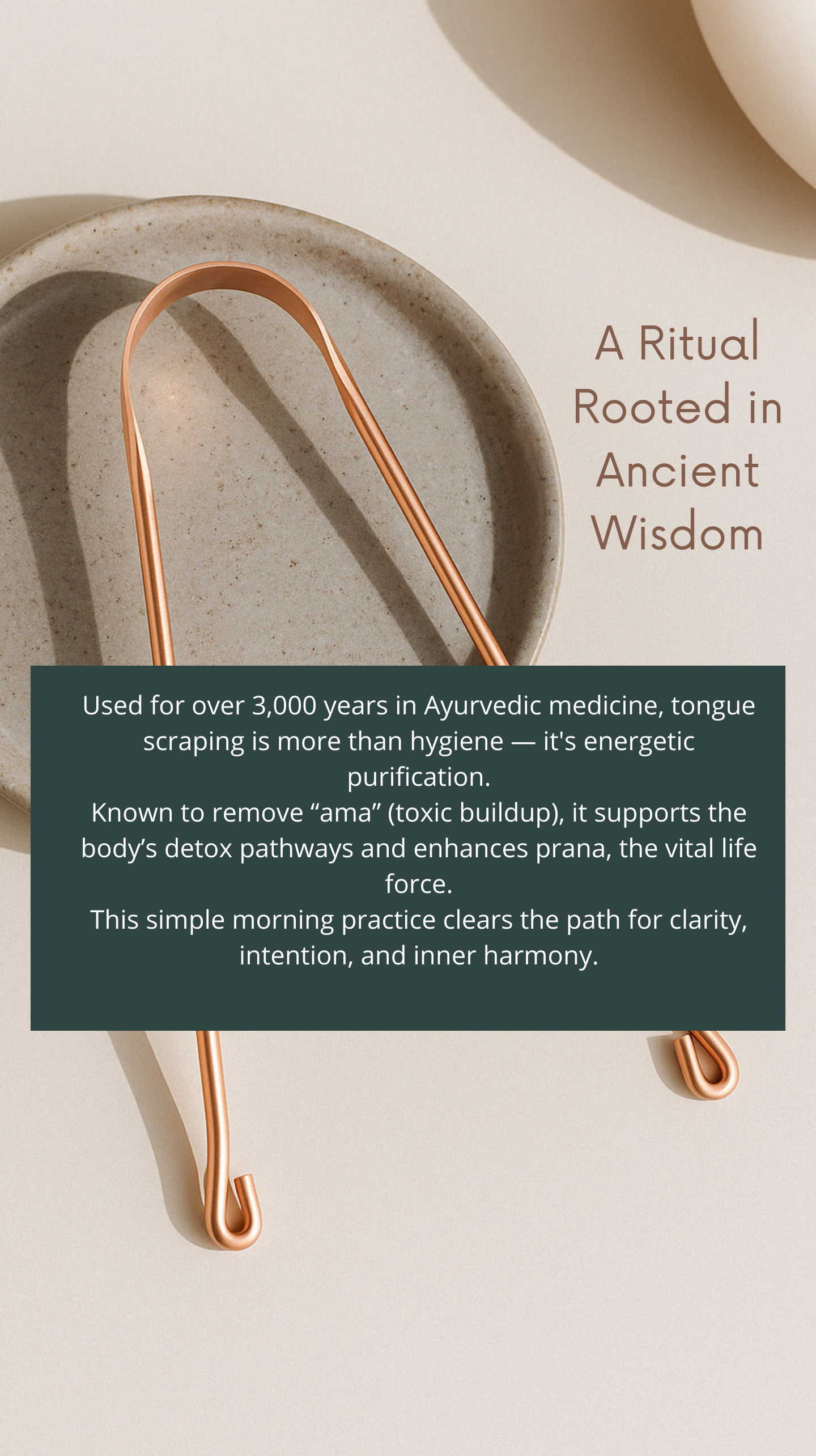 This scraper helps me feel more grounded and connected to my body in the morning. The copper feels so natural and pure.